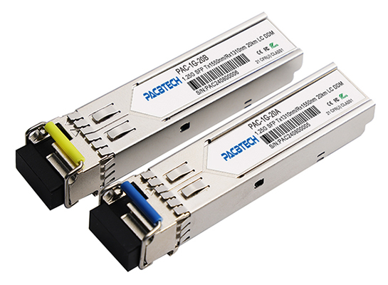 PACBTECH independently developed 1.25G SFP optical module supports a variety of transmission distances, including 550m, 2km, 10km, 20km, 40km, 80km, 120km, 160km, 180km, 200KM. Its communication protocol complies with IEEE802.3x\z\ab, the interface protocol complies with SFF-8472, and the packaging protocol complies with SFP MSA. The 1.25G SFP optical module is a high-speed, flexible and reliable fiber-optic communication interface module widely used in scenarios such as network equipment interconnection, data centers, cloud computing, enterprise networks and campus networks, supporting a transmission rate of up to 1.25Gbps.